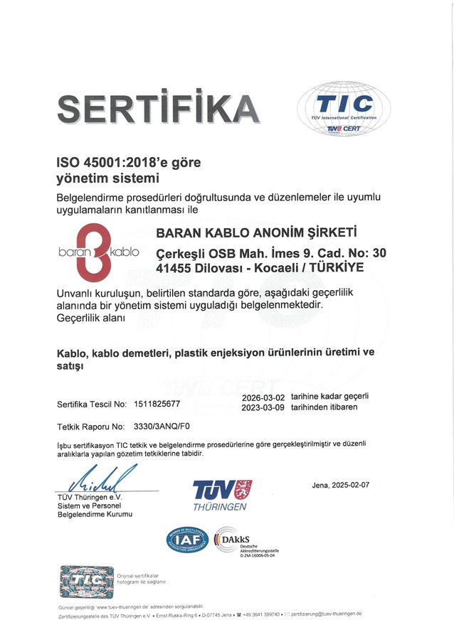 TUV Rheinland Ürün Belgeleri, ürünlerin belirli bir kalite standardını karşıladığını ve güvenli olduğunu doğrulayan bir belgedir. Bu belge, TUV Rheinland tarafından yürütülen testler ve denetimler sonucu verilir ve ürünlerin uluslararası standartlara uygun olduğunu gösterir. Baran Kablo'nun bu belgelere sahip olması, müşterilerin ürünlerinin yüksek kaliteli olduğunu ve güvenle kullanılabileceğini bilmelerini sağlar.